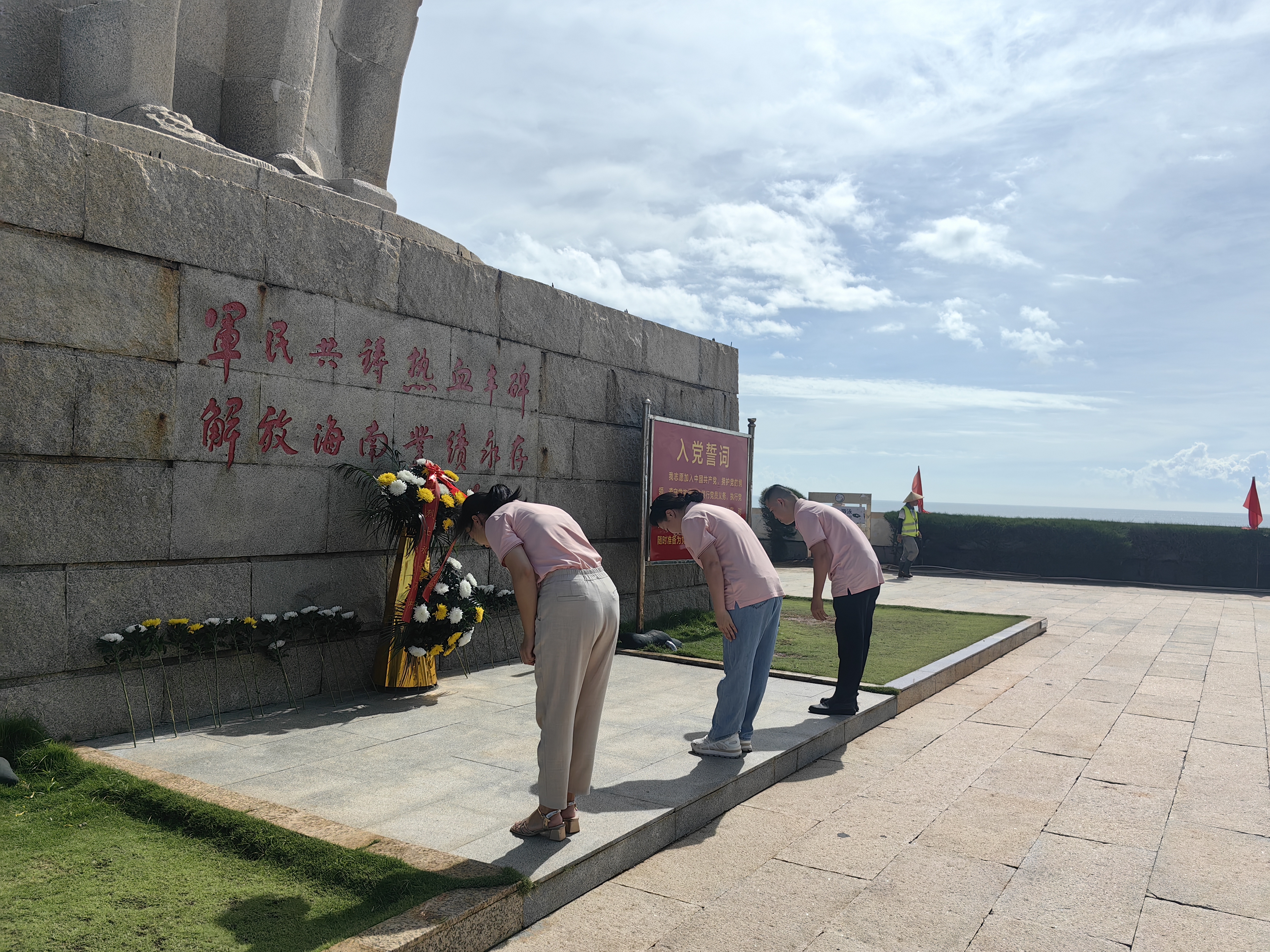 在莊嚴(yán)肅穆的“熱血豐碑”前,全體人員整齊列隊(duì),懷著無比崇敬的心情,獻(xiàn)花鞠躬,向?yàn)楹D辖夥攀聵I(yè)獻(xiàn)出寶貴生命的革命先烈致以最深切的緬懷和最崇高的敬意。