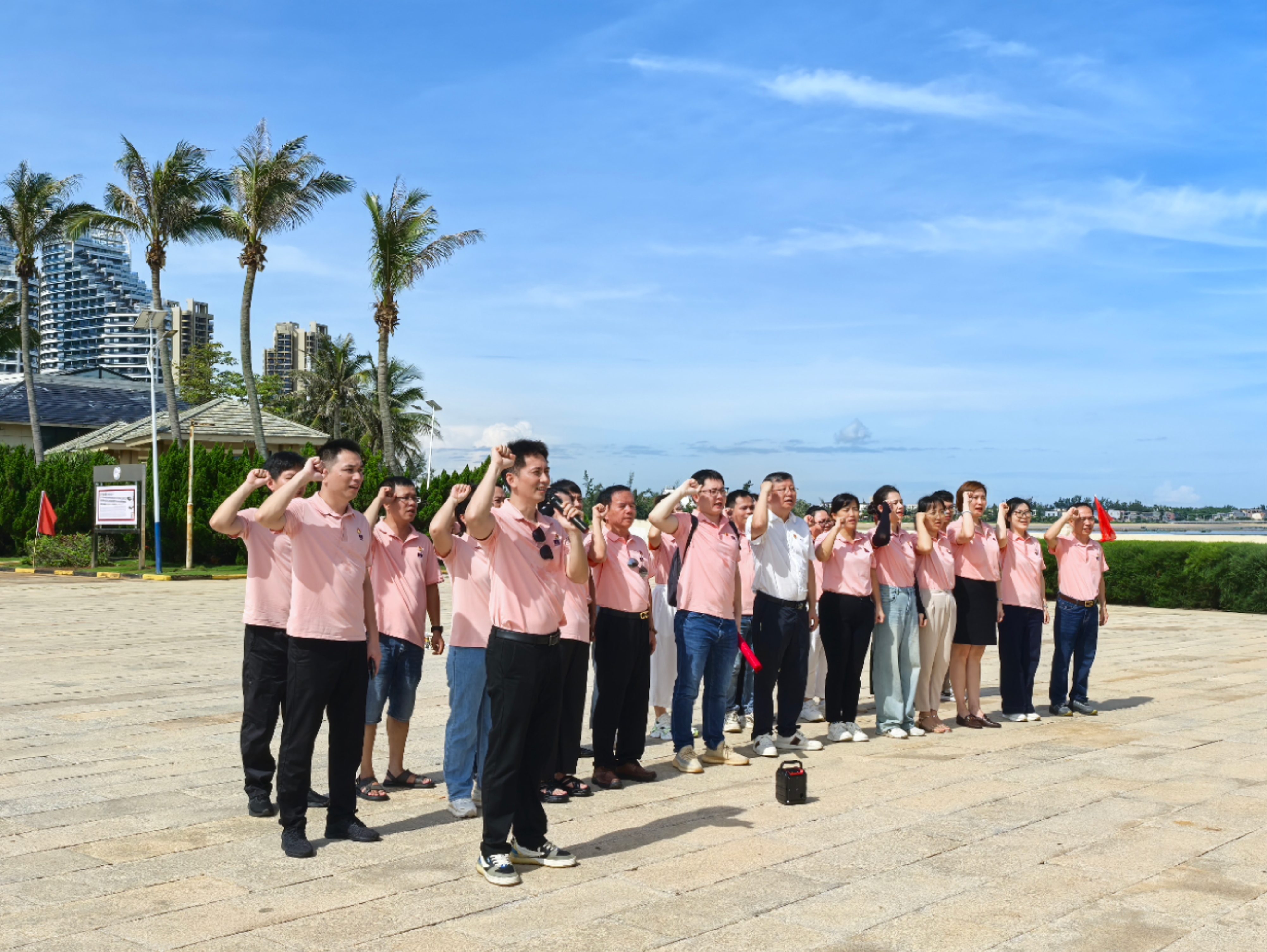 為熱烈慶祝中國共產(chǎn)黨成立104周年,激勵(lì)全體黨員及部門負(fù)責(zé)人傳承紅色基因、汲取奮進(jìn)力量,以更加昂揚(yáng)的姿態(tài)投身海南自貿(mào)港建設(shè)偉大事業(yè),皇隆制藥黨委于6月29日精心組織開展了“迎‘七一’銘初心,建功自貿(mào)港”主題教育活動(dòng)。公司全體黨員及各部門負(fù)責(zé)人齊聚海南解放公園,共同上了一堂生動(dòng)深刻的革命歷史與黨性教育實(shí)踐課。